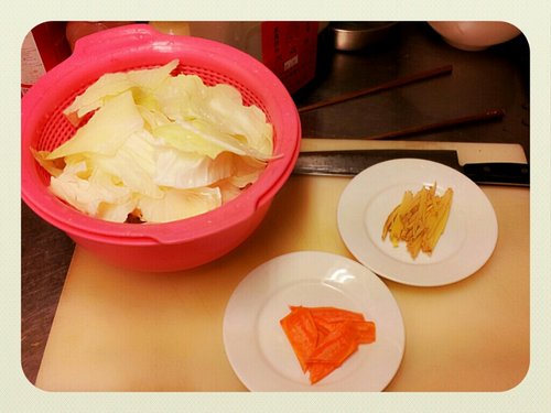→ 先下紅蘿蔔炒出胡蘿蔔素在下高麗菜轉大火